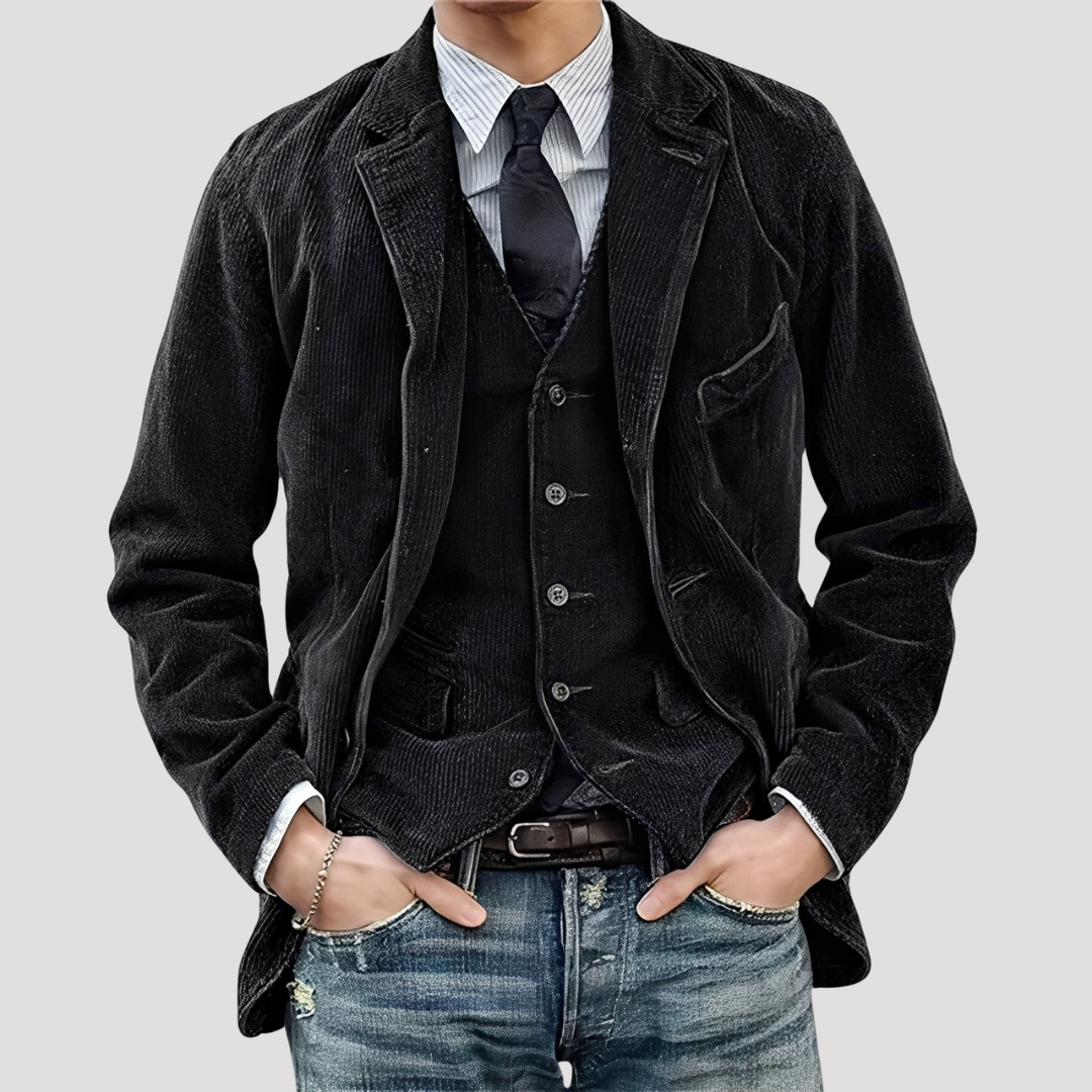 Wyobraź sobie, że zakładasz marynarkę i kamizelkę, które natychmiast nadają Ci elegancki wygląd. Ten zestaw nie tylko wzbogaca Twoją garderobę, ale także zmienia sposób, w jaki zachowujesz się w każdym pomieszczeniu, od nieformalnych wieczorów po formalne spotkania.