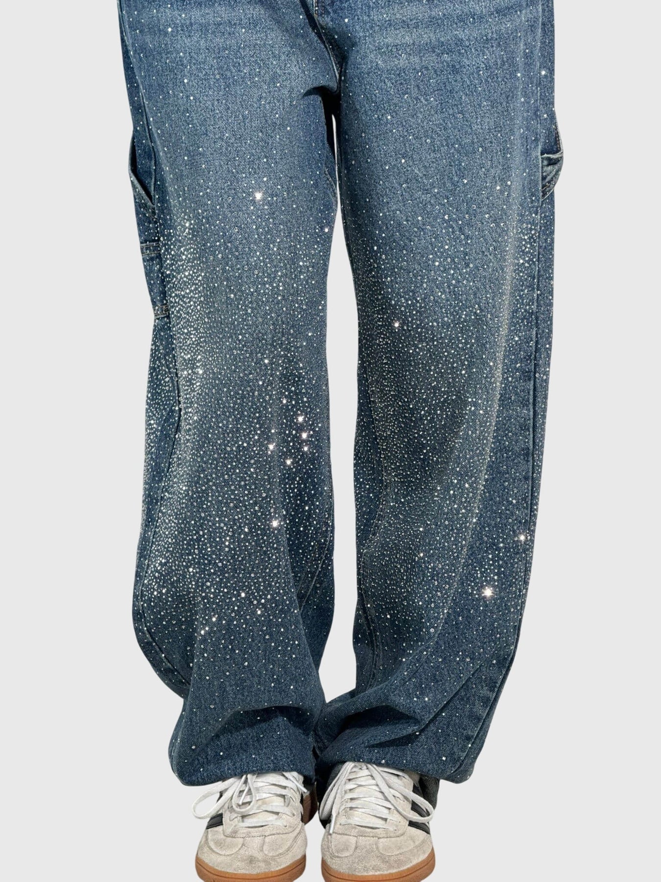 Spodnie Timantti™ Stella oferują idealne połączenie ponadczasowej elegancji i nowoczesnego komfortu. Spodnie z doskonałymi diamentowymi detalami, które luźno przylegają do ciała, są doskonałym dodatkiem, który wprowadza odrobinę luksusu do Twojego codziennego stylu, sprawiając, że wyglądasz i czujesz się bezproblemowo stylowo.