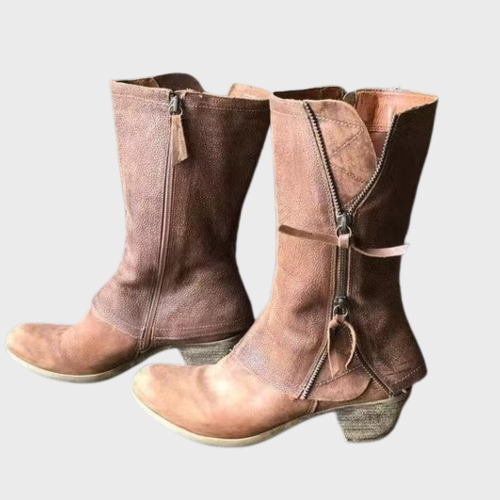 Elena | Zimowe skórzane botki kowbojskie na obcasie