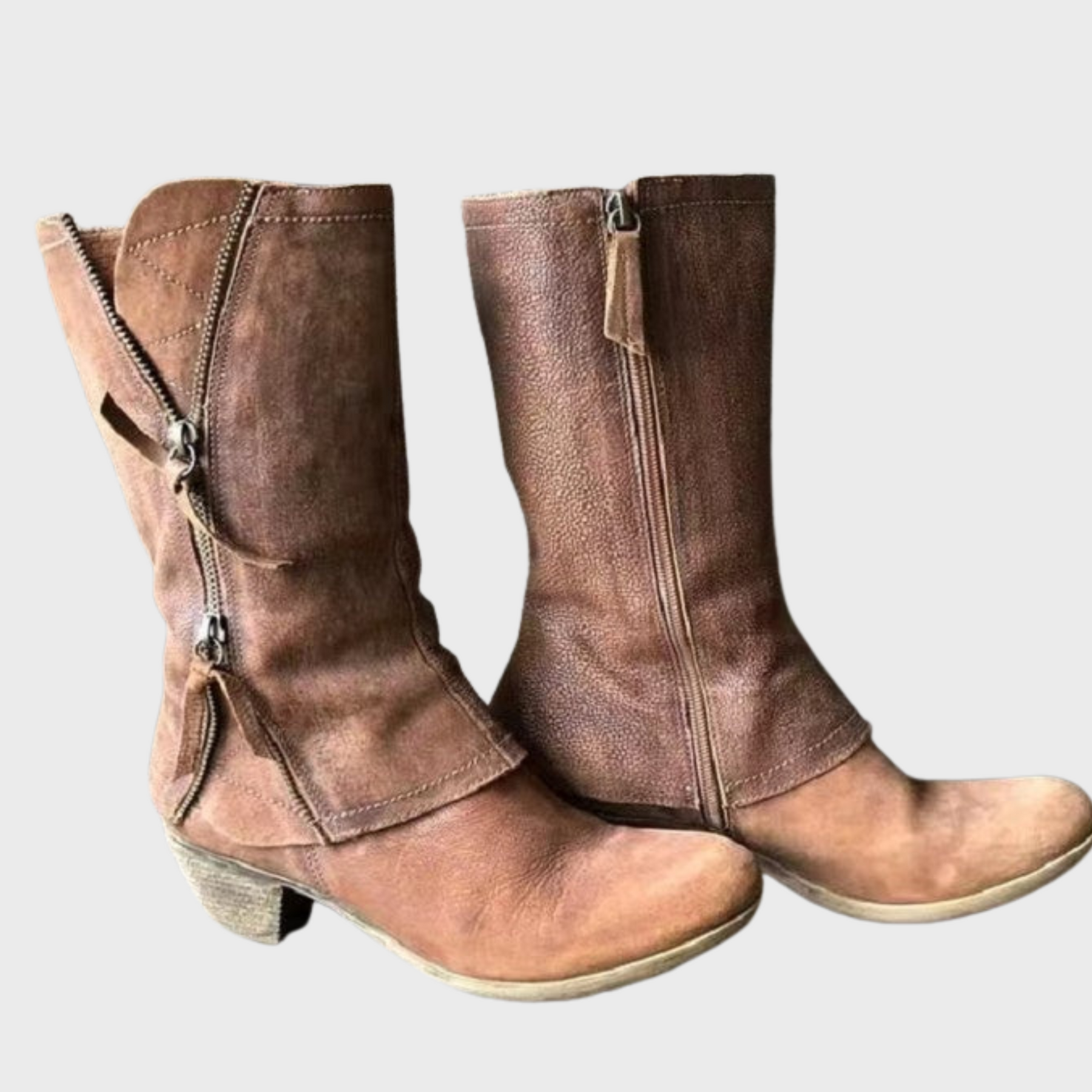 1× Elena | Zimowe skórzane botki kowbojskie na obcasie